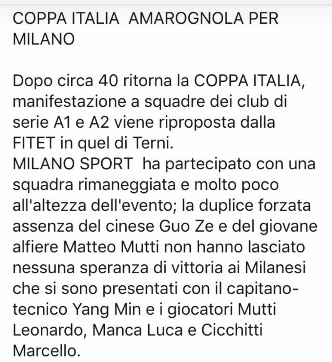 [Rilsultati e Commenti] Coppa Italia