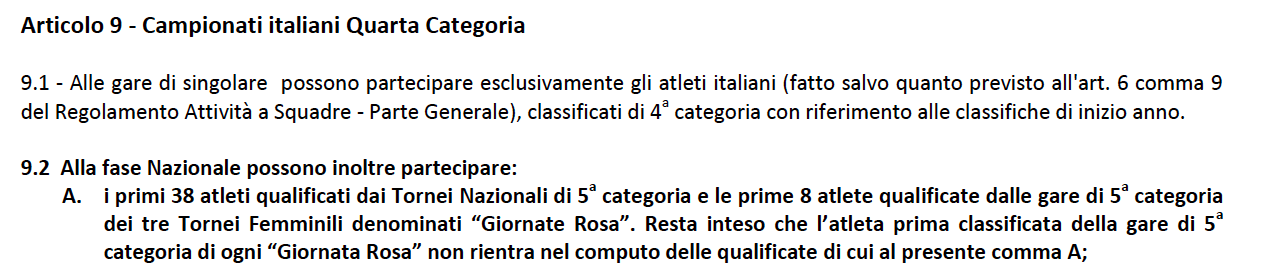Quali sono i punteggi per qualificarsi ai Campionati Italiani di Categoria?