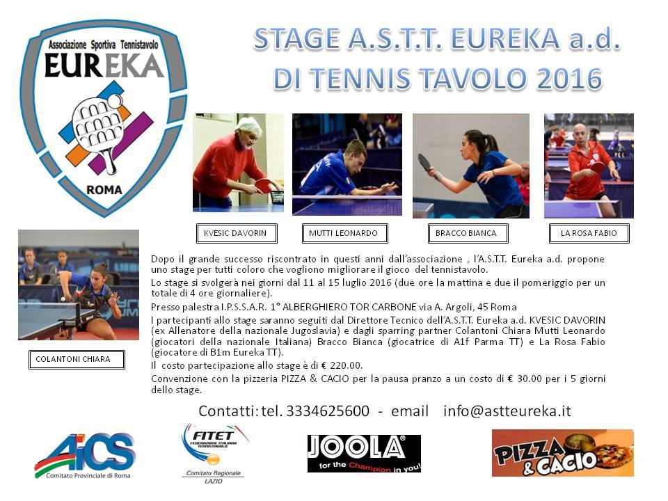 Stage di Tennistavolo, Roma luglio 2016 Eureka TT
